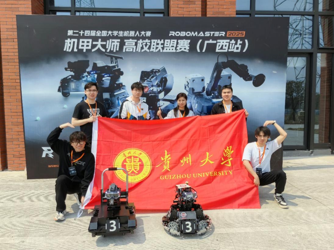 貴州大學(xué)機(jī)甲大師戰(zhàn)隊(duì)是一只年輕充滿活力的隊(duì)伍,由機(jī)械工程學(xué)院干雪梅老師作為指導(dǎo)教師,戰(zhàn)隊(duì)成員來自于機(jī)械工程學(xué)院,大數(shù)據(jù)與信息工程學(xué)院,北阿拉巴馬大學(xué)國際工程技術(shù)學(xué)院和電氣工程學(xué)院的交叉學(xué)科團(tuán)隊(duì)。此次獲獎(jiǎng)不僅是對(duì)機(jī)甲大師戰(zhàn)隊(duì)努力的肯定,也是學(xué)校在RoboMaster賽事中取得的重大突破。相信在學(xué)校教務(wù)處和機(jī)械工程學(xué)院領(lǐng)導(dǎo)的關(guān)心指導(dǎo)下,機(jī)甲戰(zhàn)隊(duì)將以此次佳績?yōu)樾缕瘘c(diǎn),持續(xù)跨學(xué)科融合,優(yōu)化團(tuán)隊(duì)協(xié)作,積極備戰(zhàn)后續(xù)賽事,努力在3V3對(duì)抗賽和超級(jí)對(duì)抗賽展現(xiàn)貴大學(xué)子的創(chuàng)新風(fēng)采與拼搏精神,為學(xué)校爭得更多榮譽(yù)。