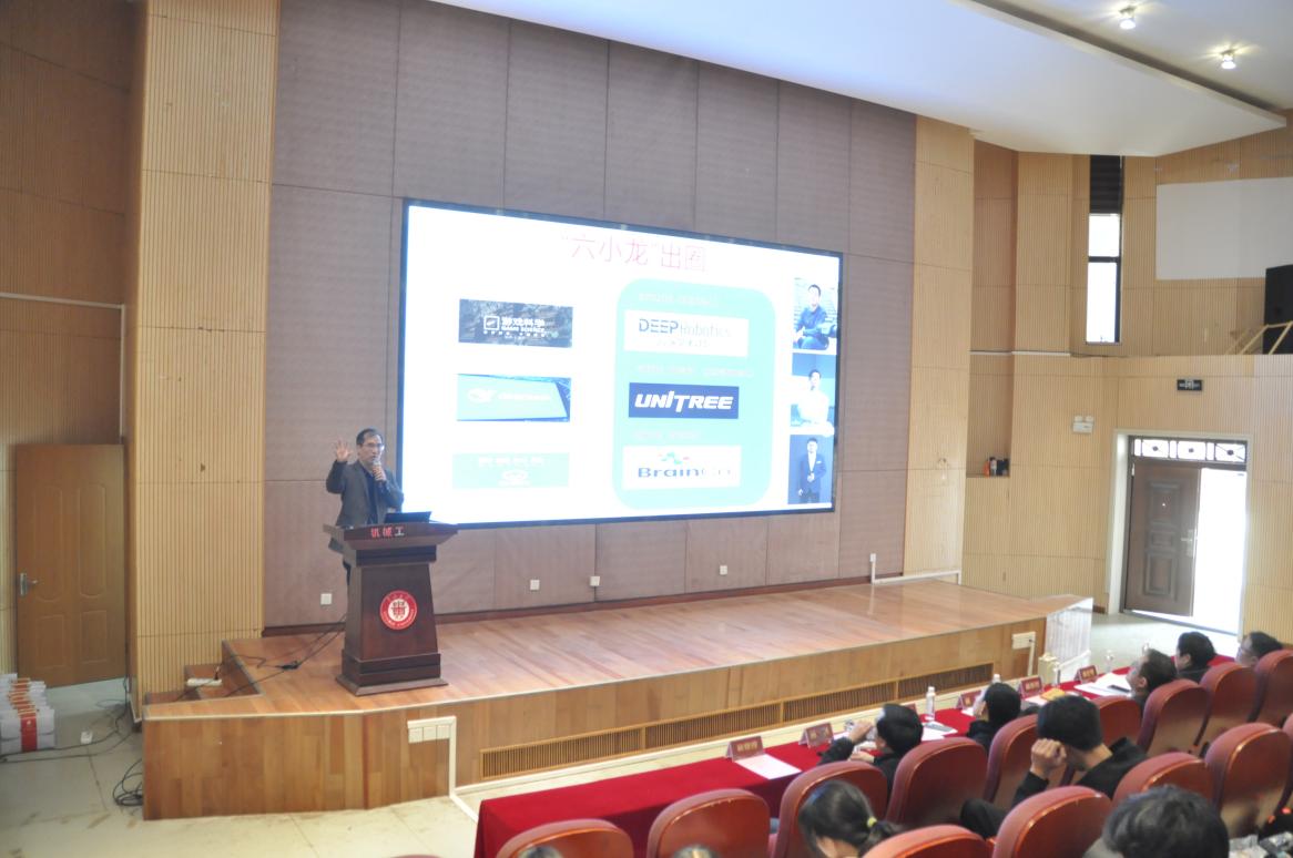 李家春以“杭州六小龍”火爆出圈的例子,一段機器人在復雜地形運動并做出高難度動作的視頻,引出機械專業(yè)在未來的發(fā)展前景,隨后以學院近兩年考研數(shù)據(jù)的對比,向同學們強調(diào)選修博學數(shù)學、英語的重要性,鼓勵動員同學積極備考升學,選修學校組織開展的博學英語、數(shù)學課。