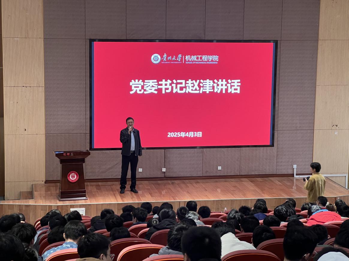 為幫助大三學生明確未來方向,合理規(guī)劃學業(yè)與職業(yè)發(fā)展,4月3日,機械工程學院在圓形報告廳召開了2022級本科生年級大會。此次大會聚焦考研動員、出國留學、入伍以及就業(yè)政策解讀,為同學們答疑解惑,指引前行方向。學院黨委書記趙津、正處級組織員董蔚然、副院長李家春、副院長唐正強出席,外國語學院樊章俊老師、學院教務科陳馨老師以及2022級全體同學參加。