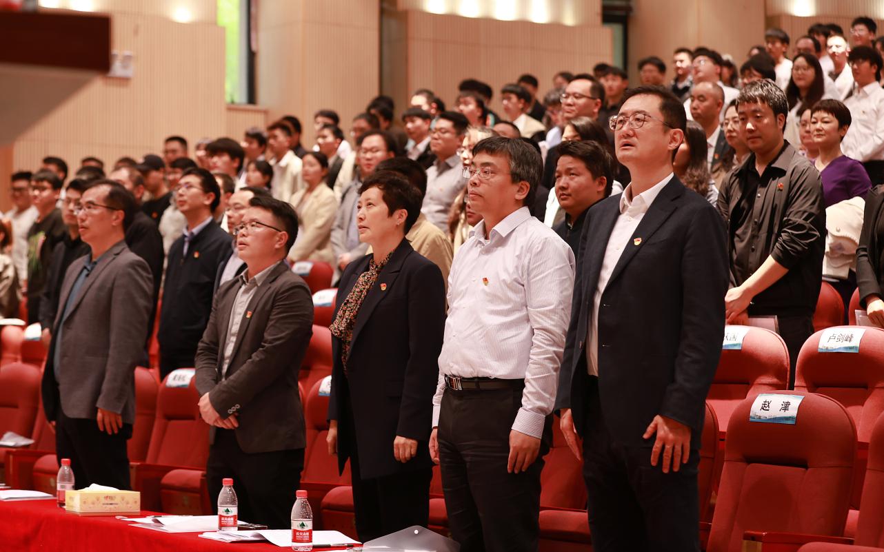 大會在莊嚴的國歌聲中拉開帷幕,全體黨員起立唱響國歌。